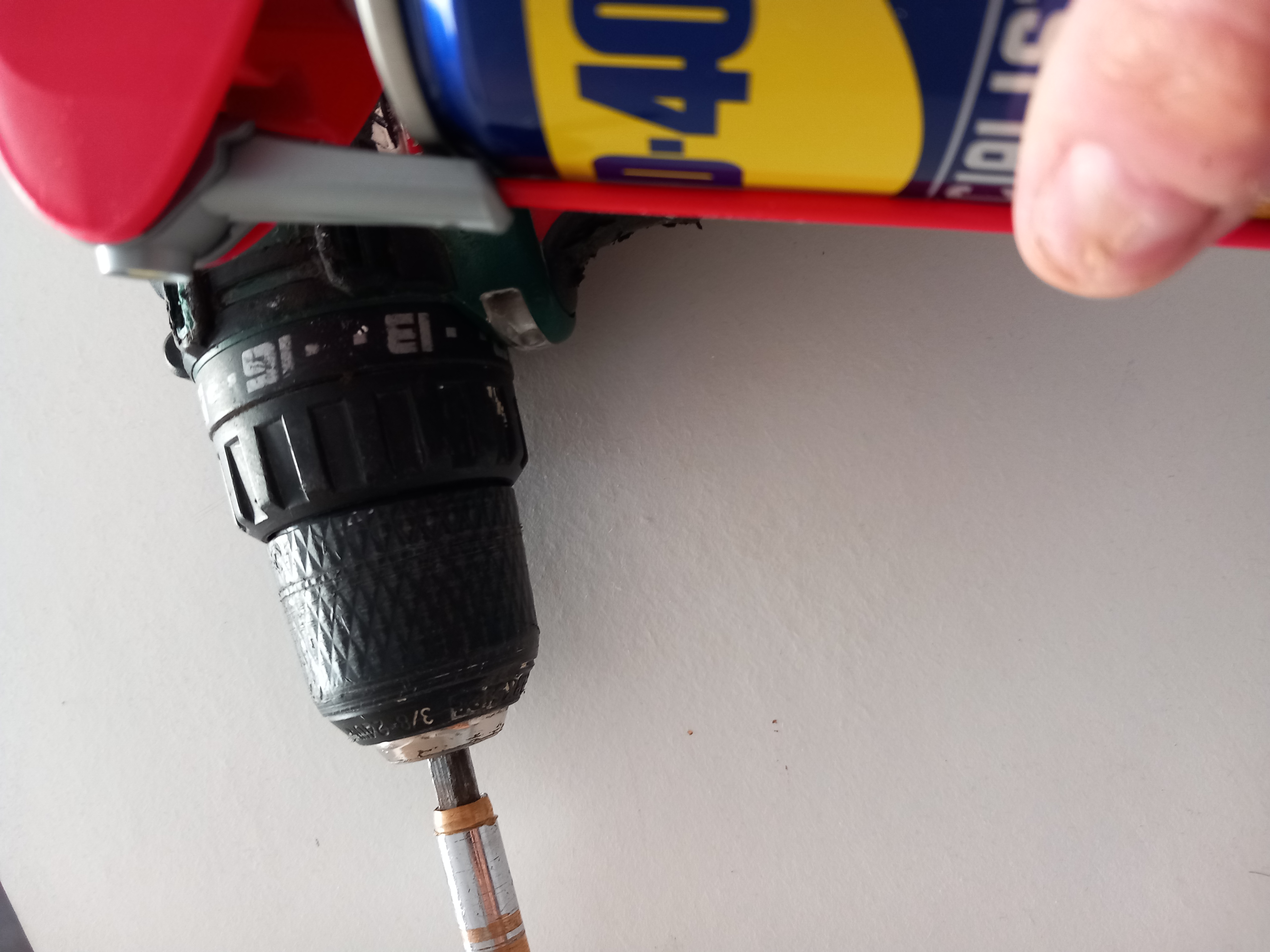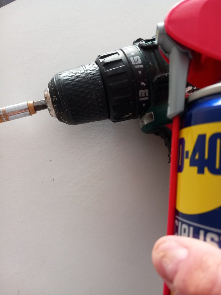 Akkus szerszám tokmány fej része befújása wd40-nel szorulás ellen.