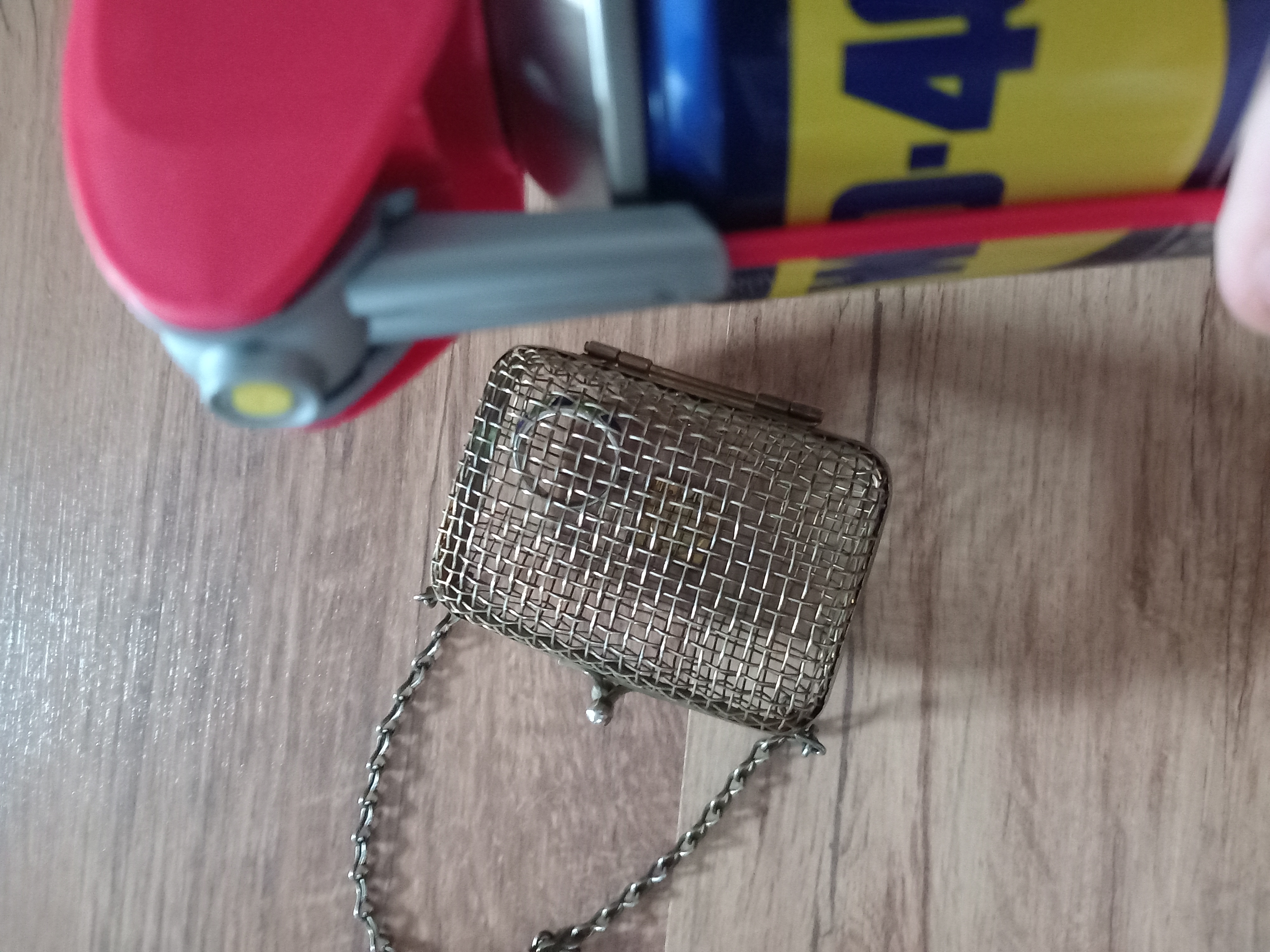 Antik ékszertartó nyitó befújása wd40-nel.