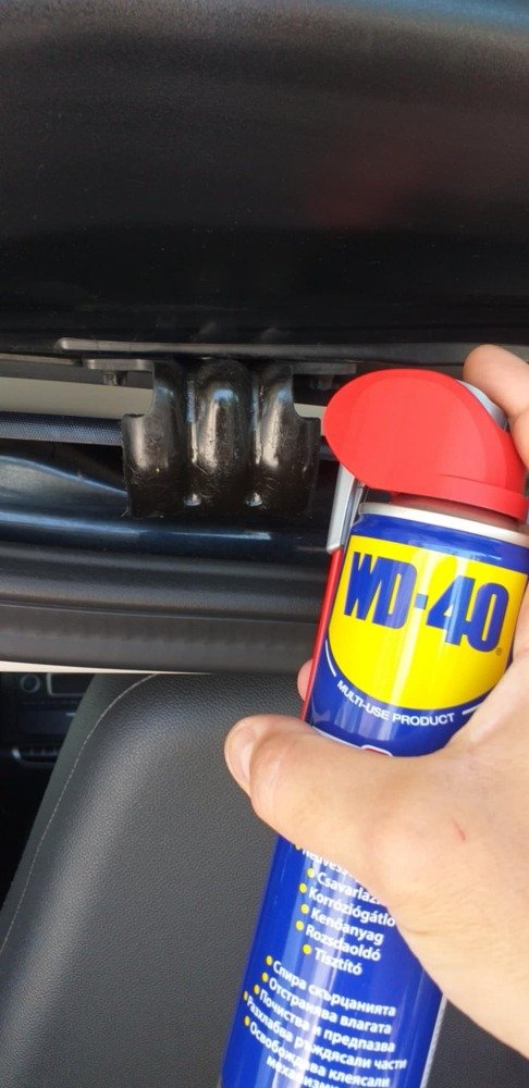 Autó hátsó szélvédő emelő zsanér karbantartása wd40-nel.