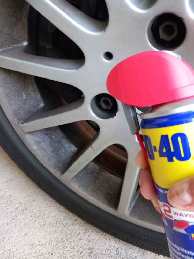 Autó kerék csavarok karbantartása wd40-nel.