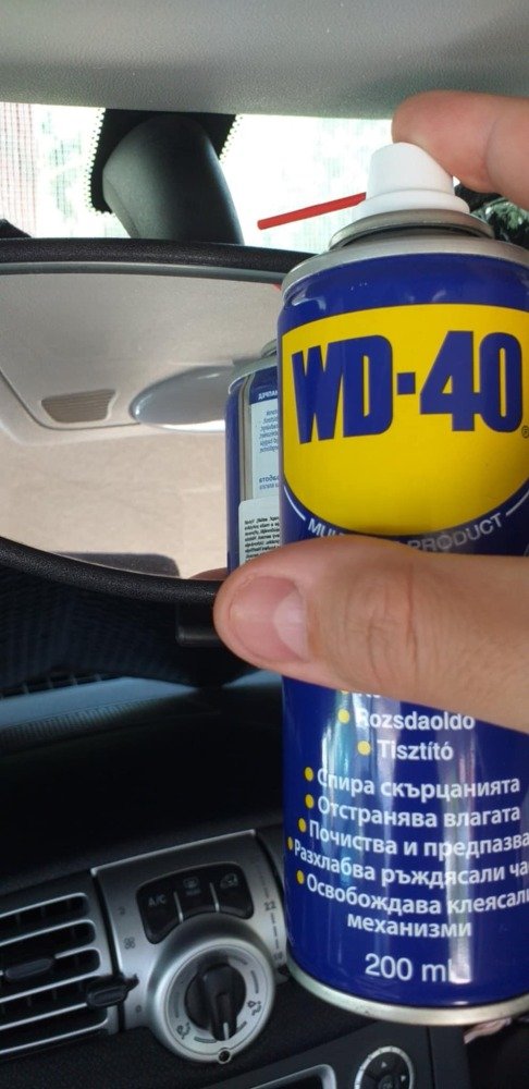 Autó visszapillantó tükör mechanika befújása wd40-nel.