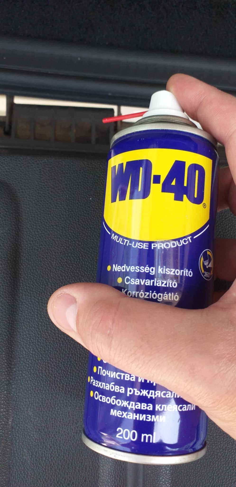 Autó záró doboz fedél zsanér befújása wd40-nel.