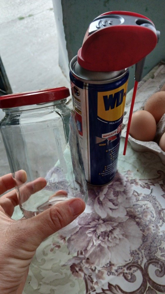 Befőttes üvegek cimkéjét szedtem le WD-40 segítségével. Kicsit hagyni kellett hogy leoldja de utána szépen lejött.