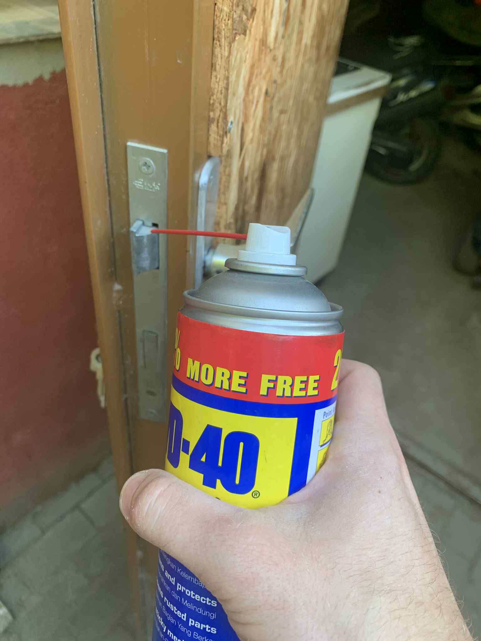 Nagypapám bejárati ajtajának zárja teljesen beragadt, alig lehetett elfordítani a kulcsot. Elsőre megijedtünk, hogy lakatost kell hívni, de elővettem a jól bevált WD-40-et.