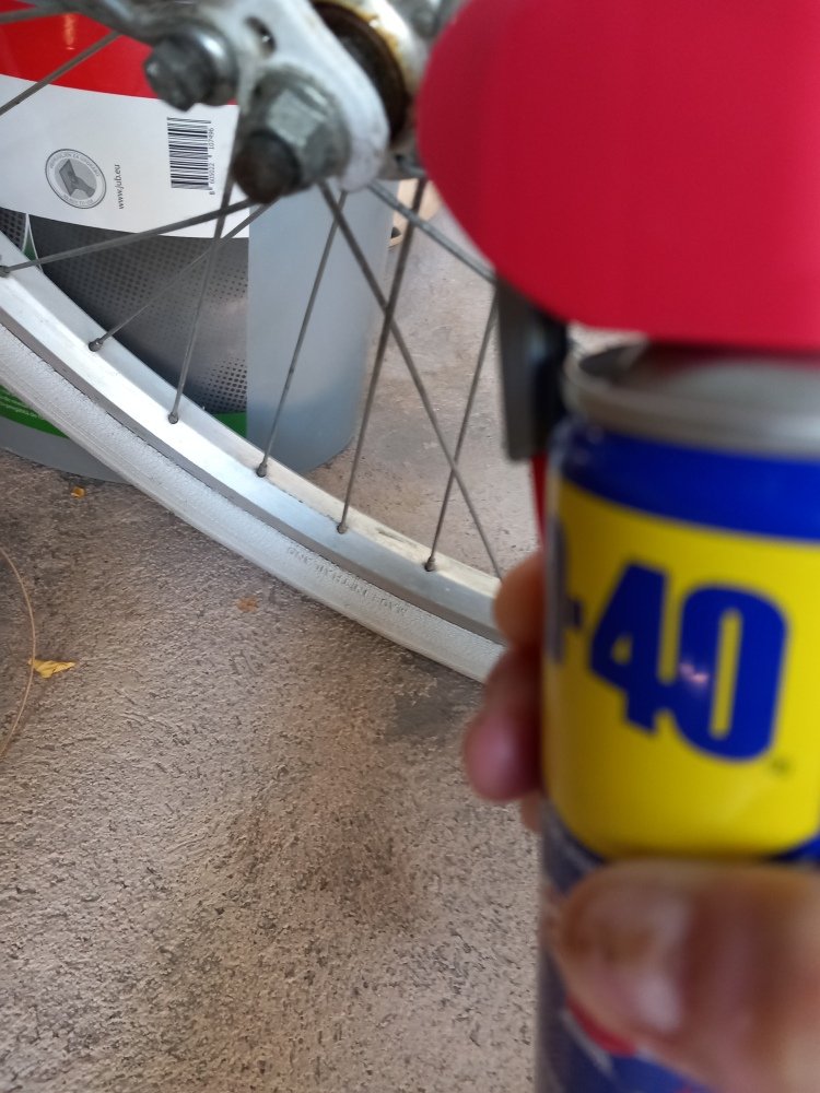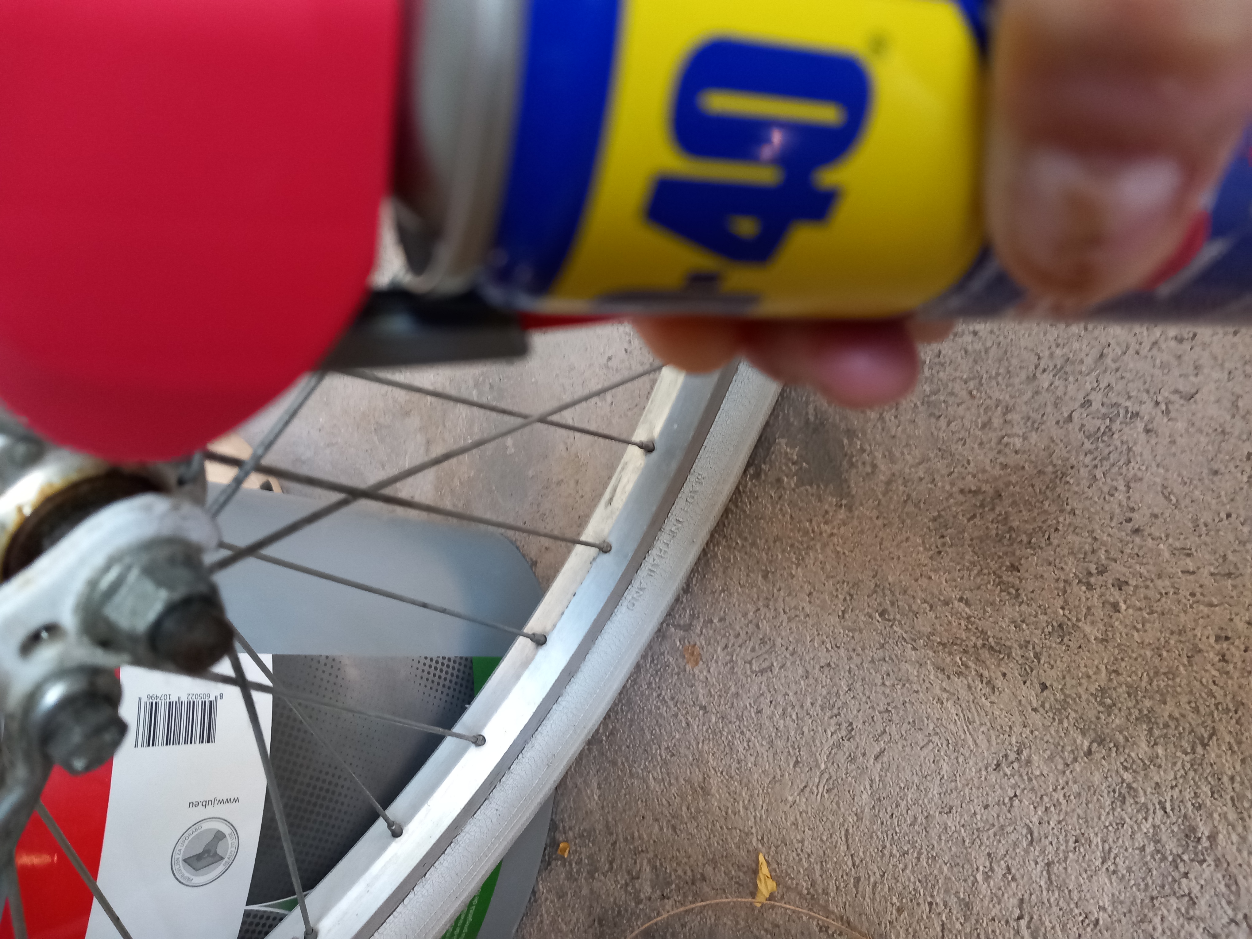Bicikli kerék fő csavar karbantartása wd40-nel.