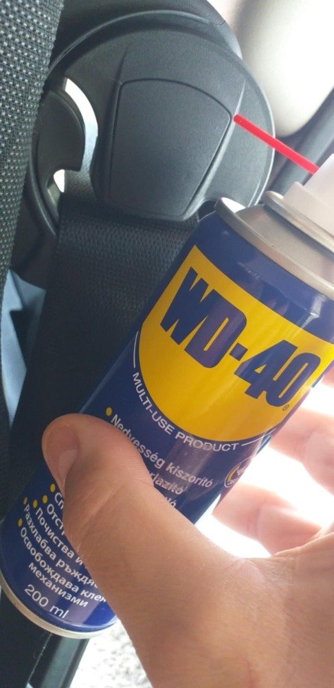 Biztonsági övtartó szerkezet befújása wd40-nel elakadás ellen.