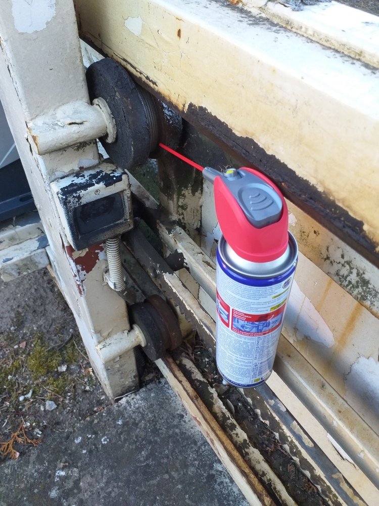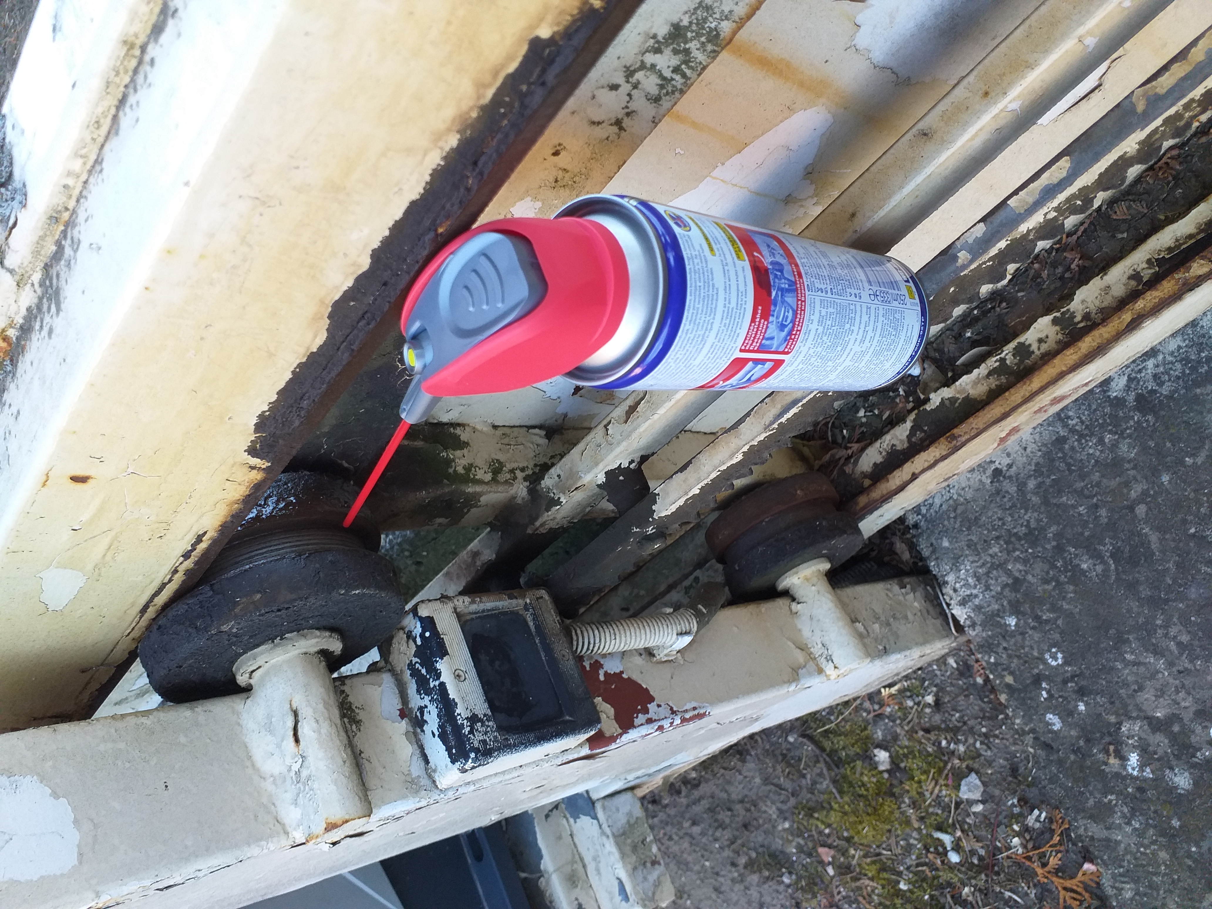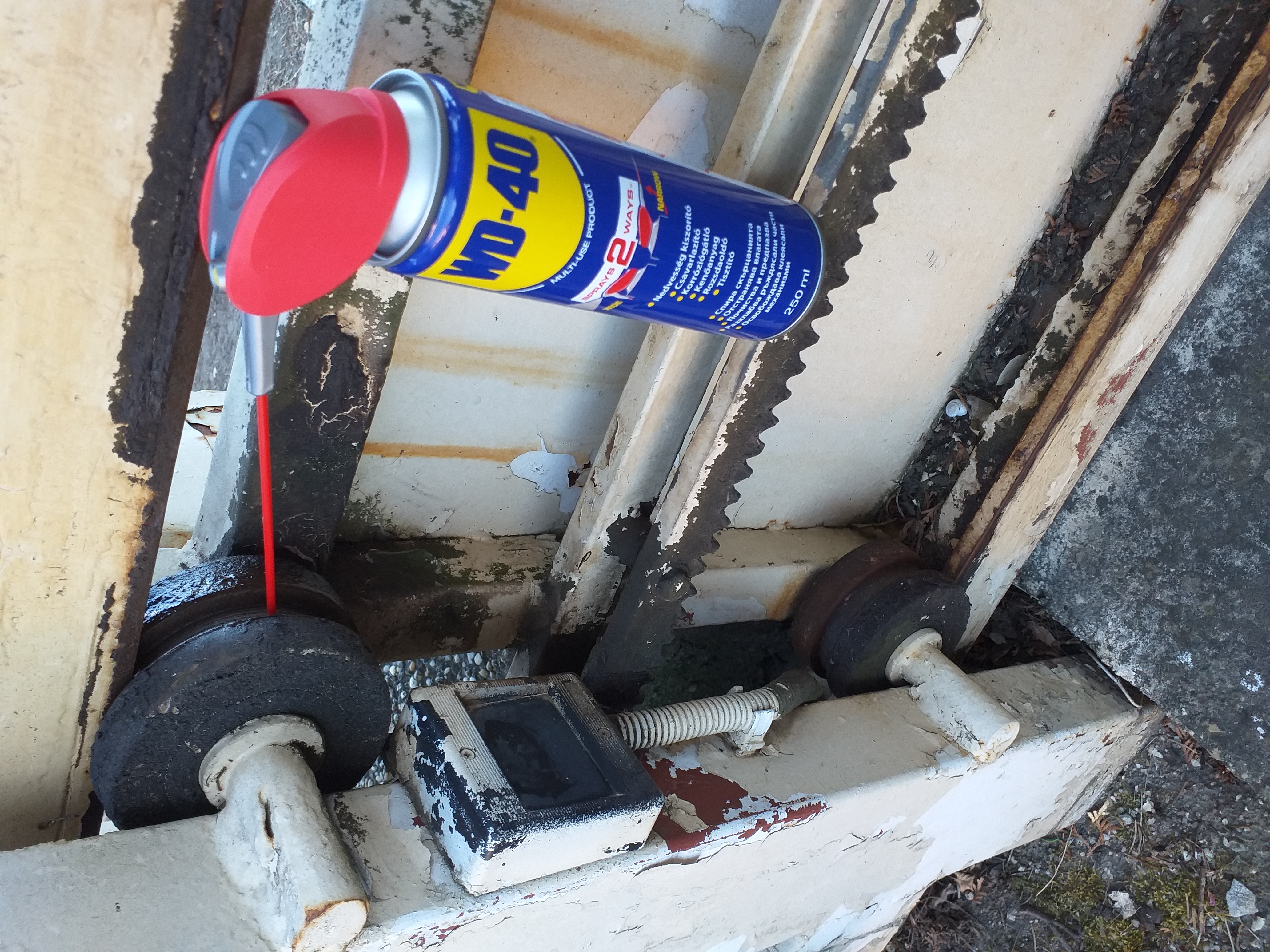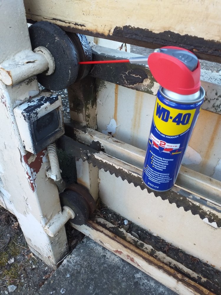 Elektromos vaskapu, ami naponta többször van mozgatva és mellette az igen szélsőséges időjárást is bírnia kell.Bizony nagyon fontos figyelni a gördülékenységre, főleg télen amikor "lefagy" Napi segítség a wd40, sokszor a létrát is használni kell a sima csúszåshoz.