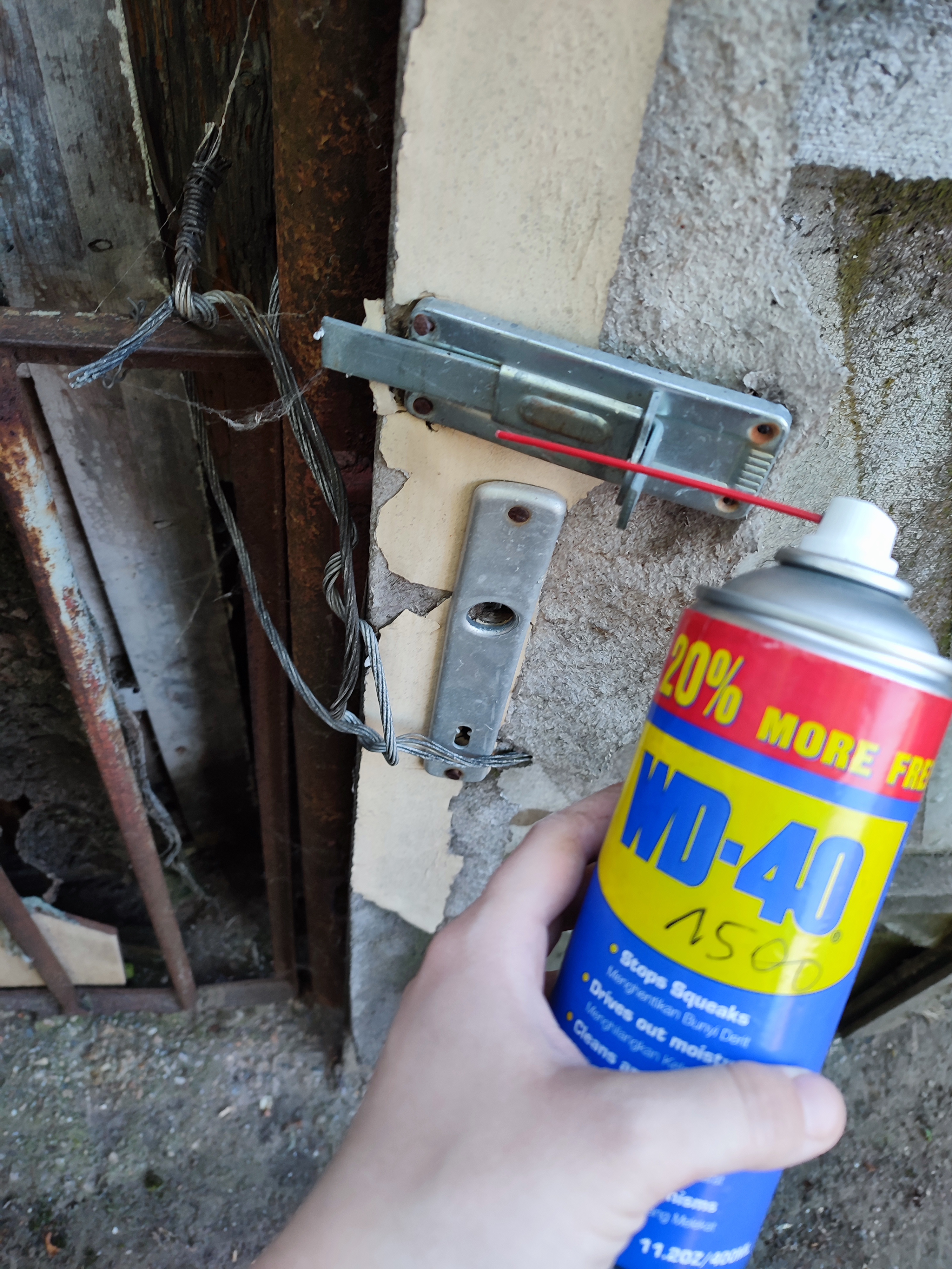 A fatároló ajtaja nehezen nyílt, szinte teljesen beragadt. Egy kis WD-40-et kapott a zsanér, és már könnyedén nyitható.