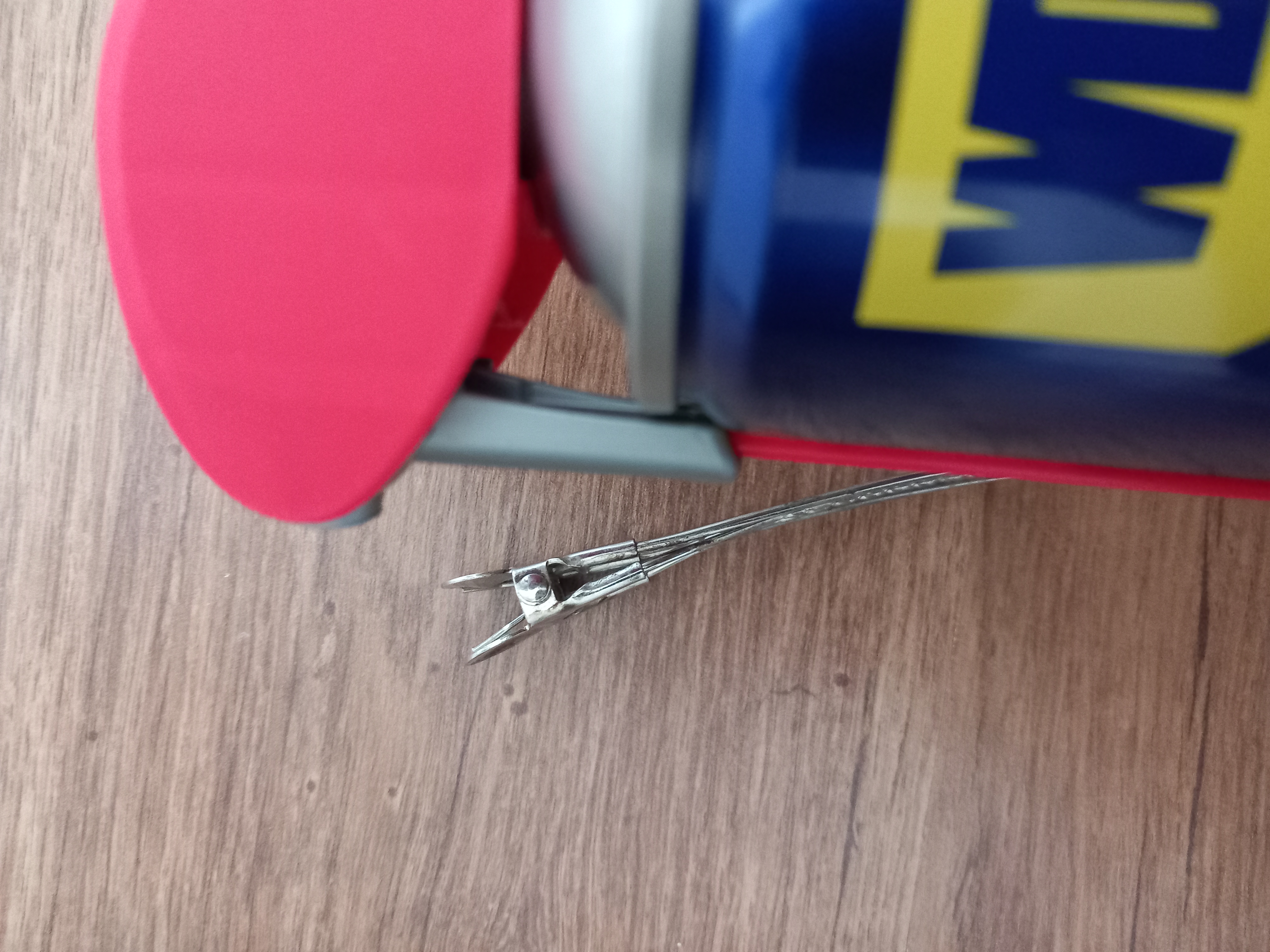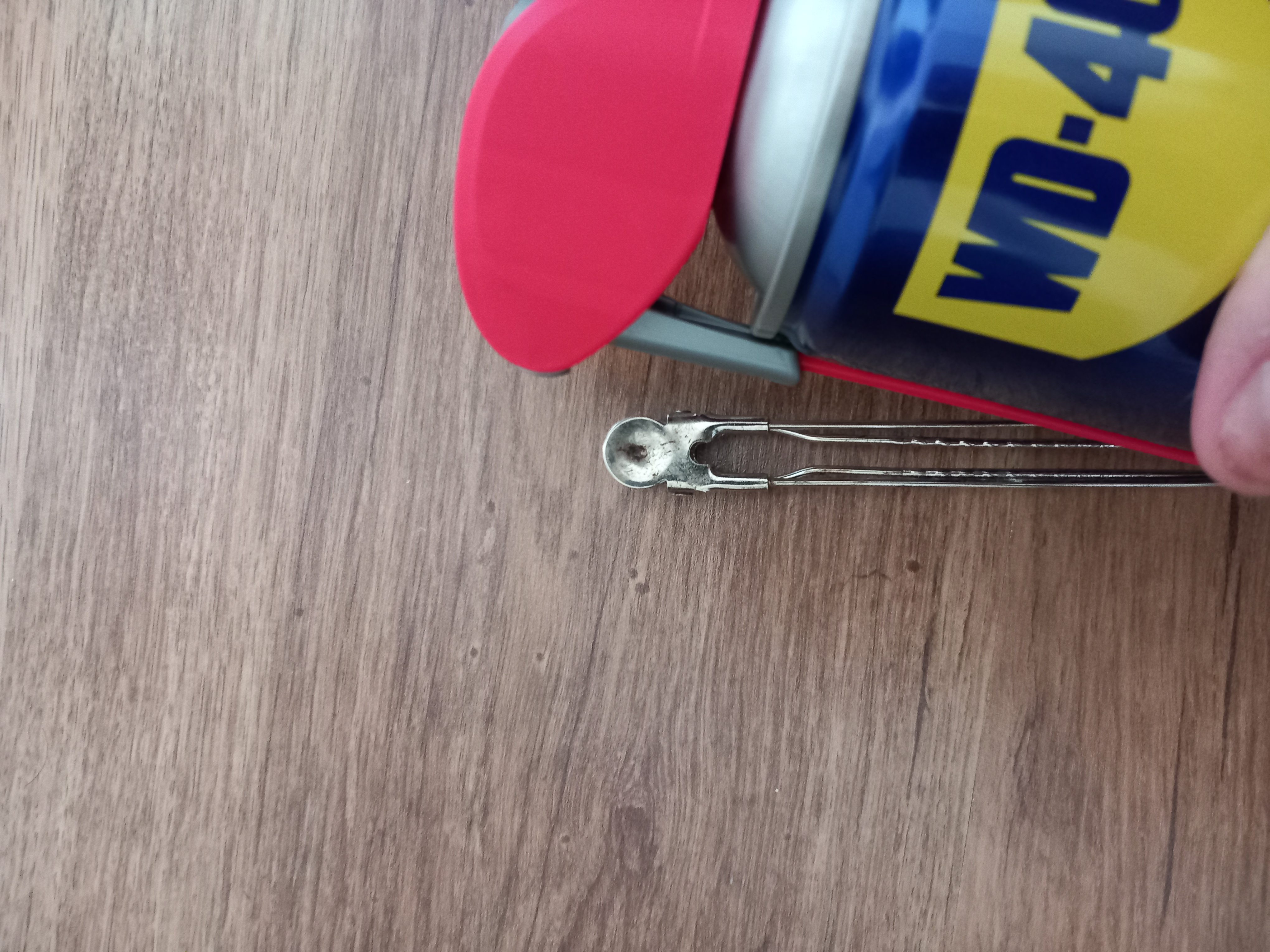 Fodrász csat rugó befújása wd40-nel anyagfáradás ellen.