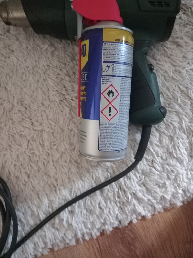 Hőlégfúvó kapcsoló gombainak karbantartása wd40-nel.