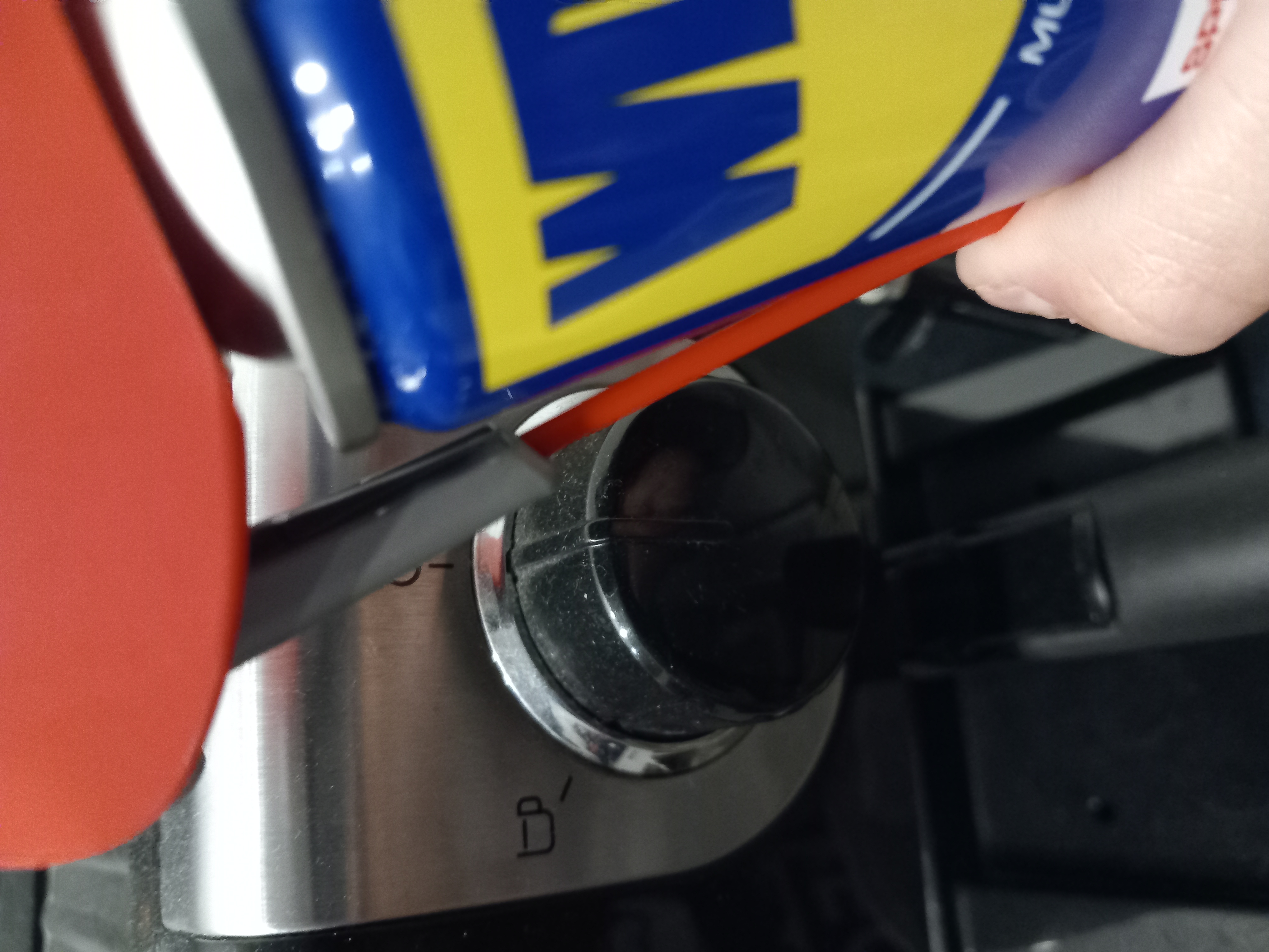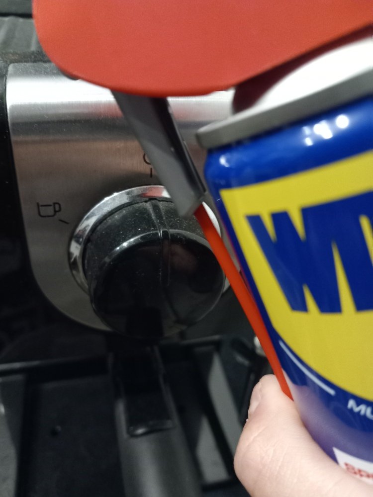Kávéfőző tekerő gomb kezelése wd40-nel.