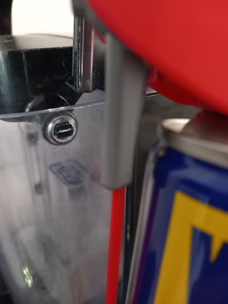 Kávéfőző tartály fül csavar befújása wd40-nel nyikorgás és szorulás ellen.