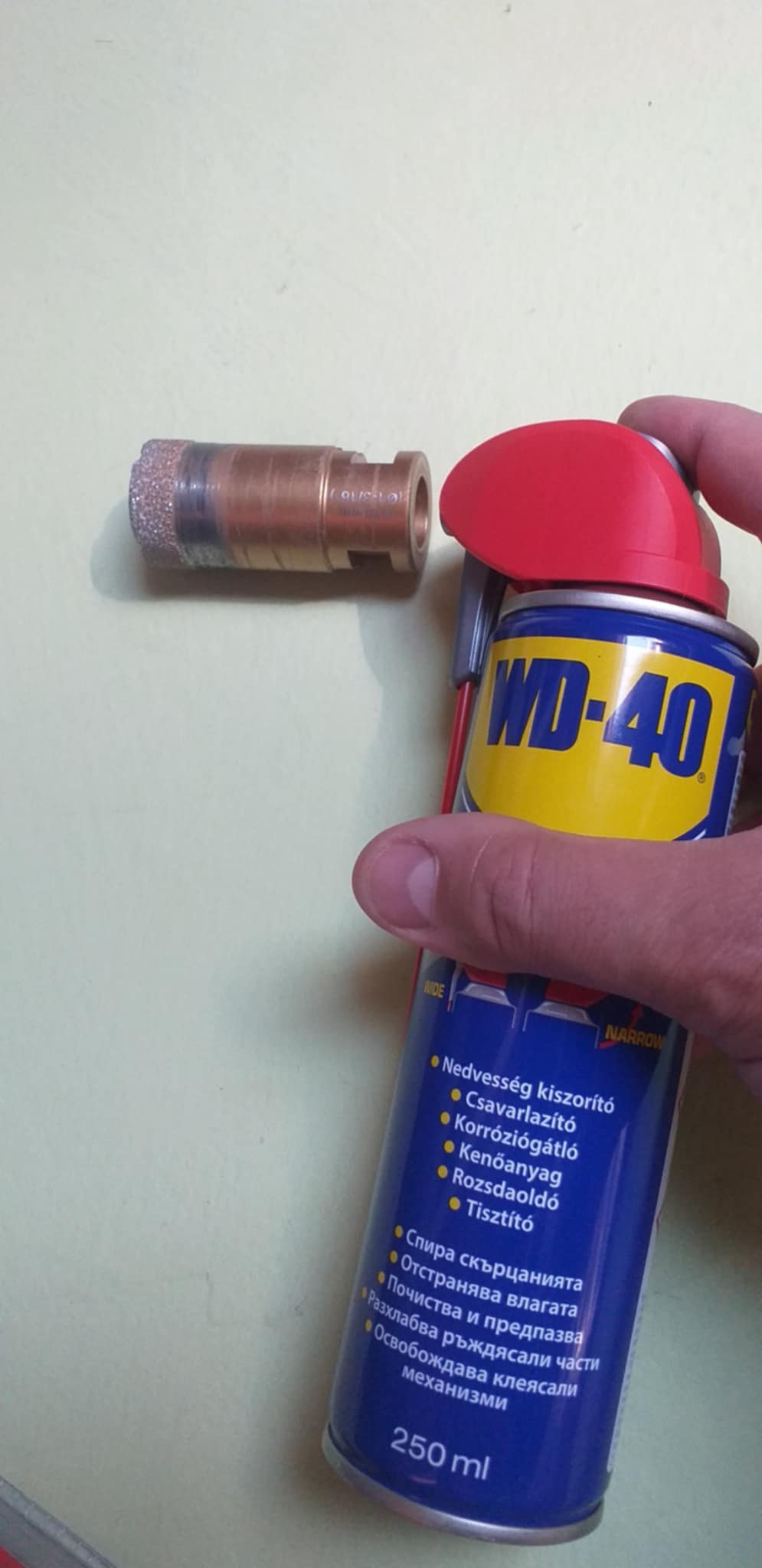 Menetes gyémántvágó befújása wd40-nel.
