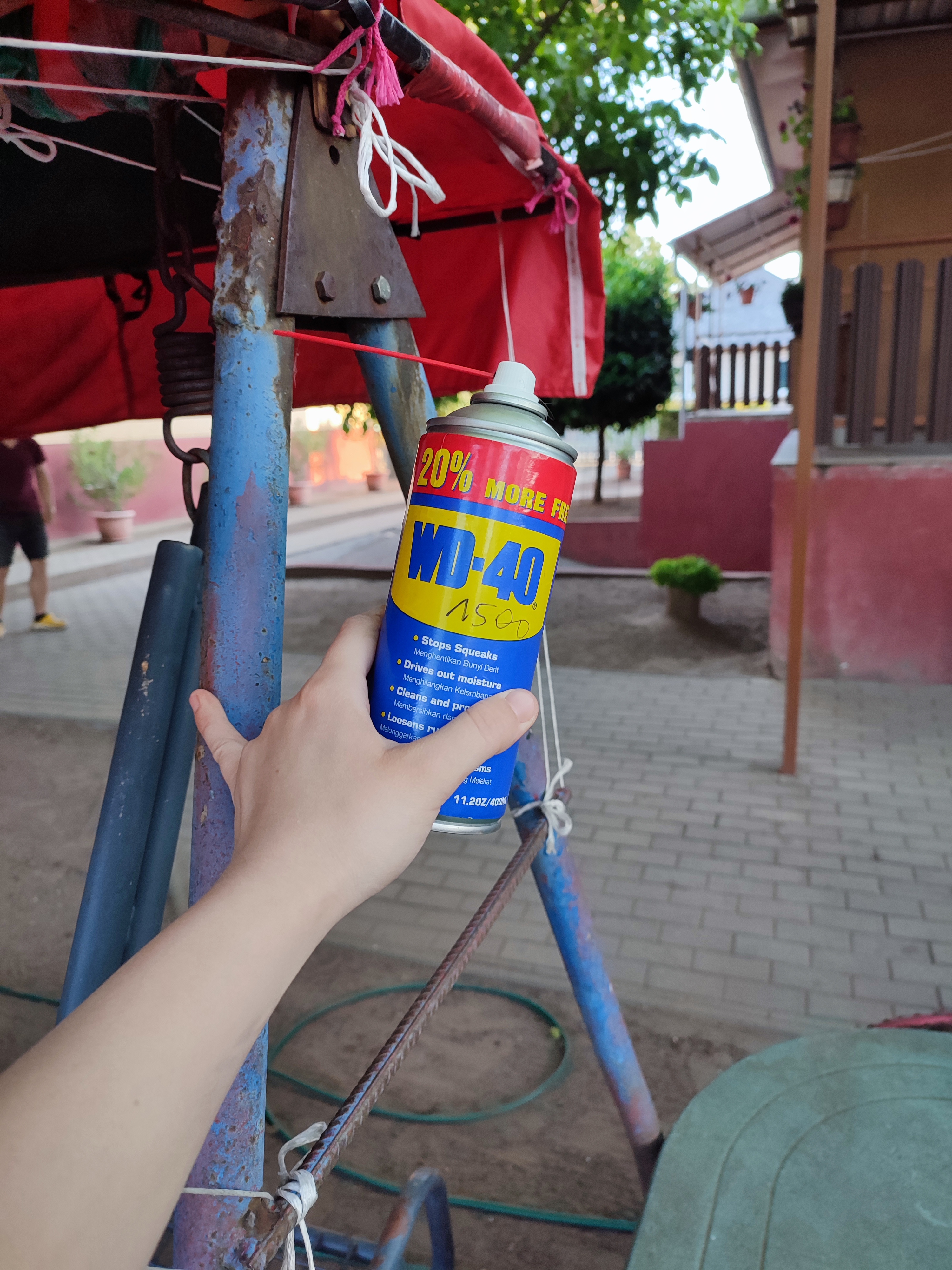 A nagyszülők hintaágya már recsegett, ropogott, akadt – WD-40-nel kezeltük, most újra csendesen és simán működik!