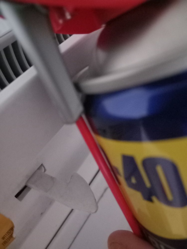 Mosógép ajtó nyitó fül befújása wd40-nel,hogy ne ragadjon be.
