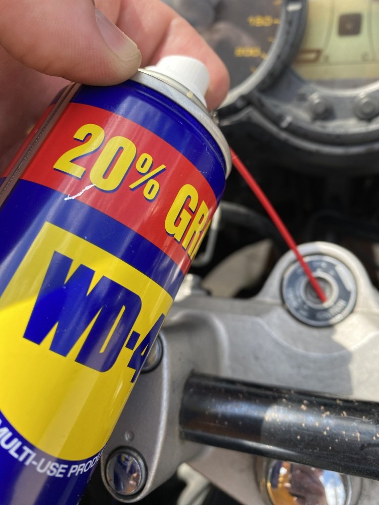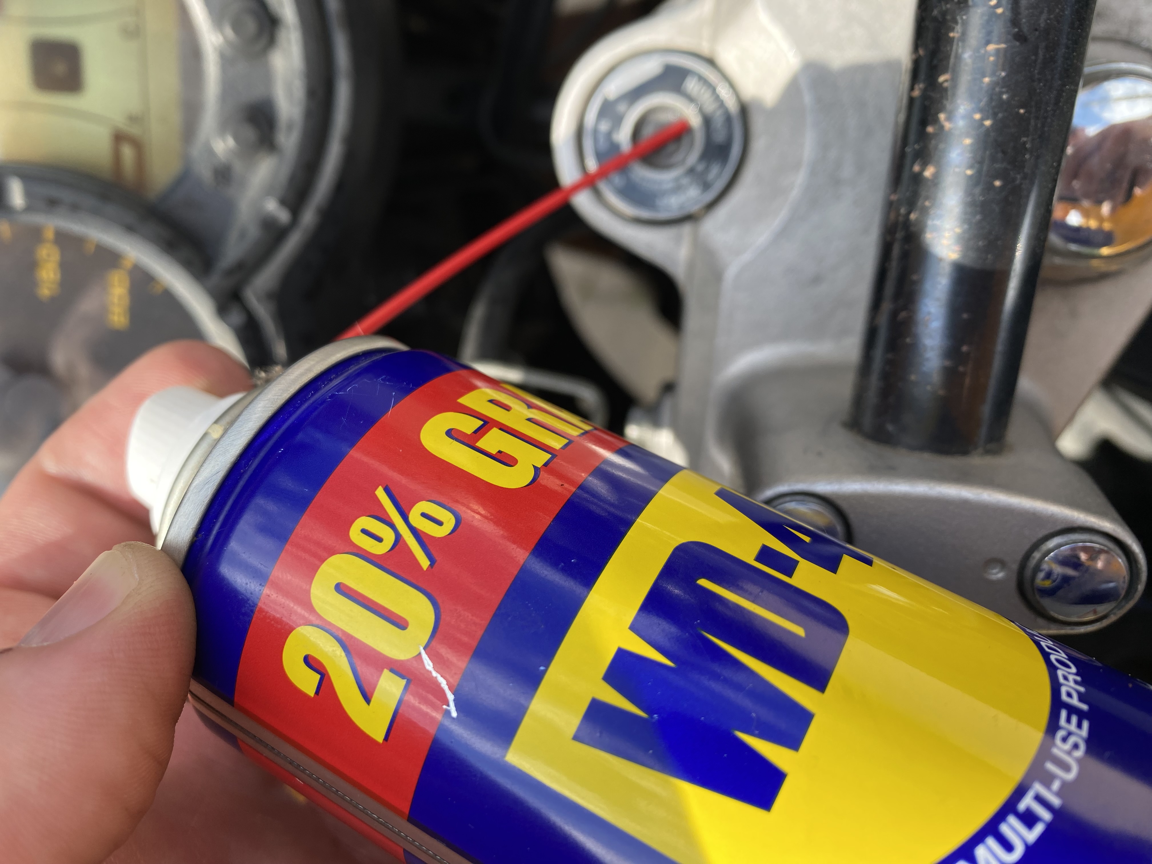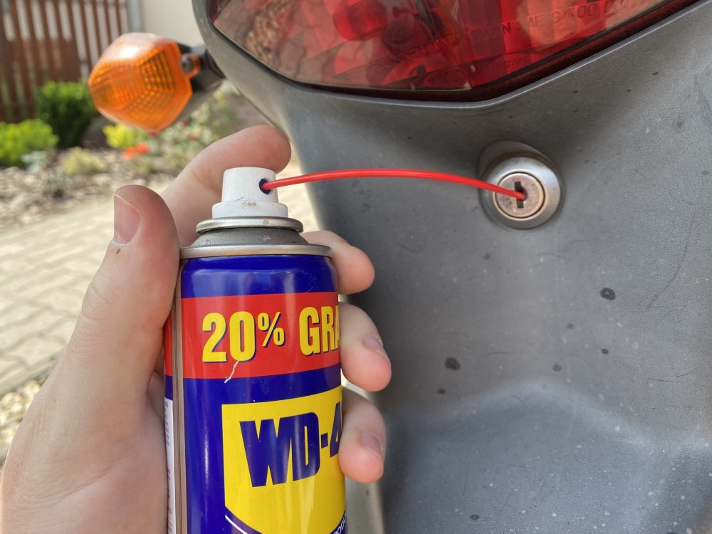 A motorkerékpáron lévő összes zárba WD-40-et fújtam, így sokkal könnyebben nyithatók a kulccsal.