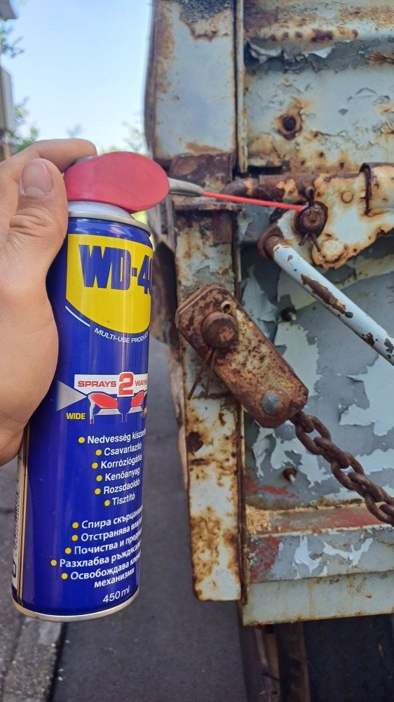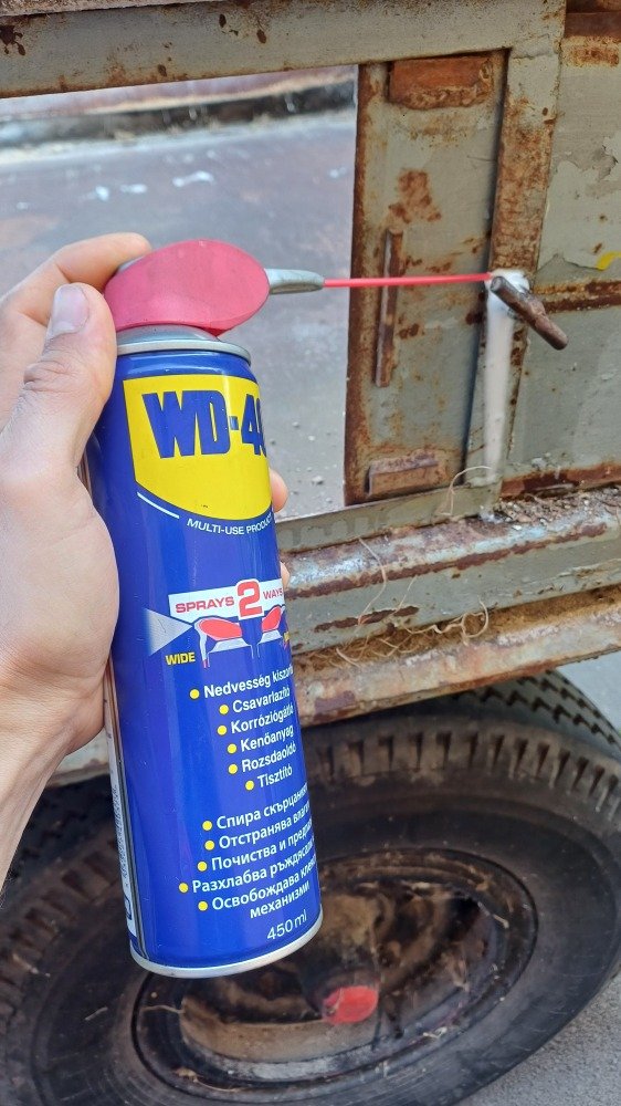 Pótkocsink oldal súbere nehezen mozgott átfújtam wd-40-el, és újra könnyen használható. Ha már kezemben volt a csodaszer a reteszeket és zsanérokat is átfújtam vele, hogy ne nyikorogjanak az alkatrészek.