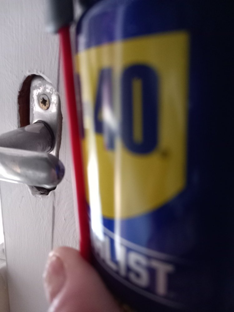 Retro ablak kilincs csavarok karbantartása wd40-nel.