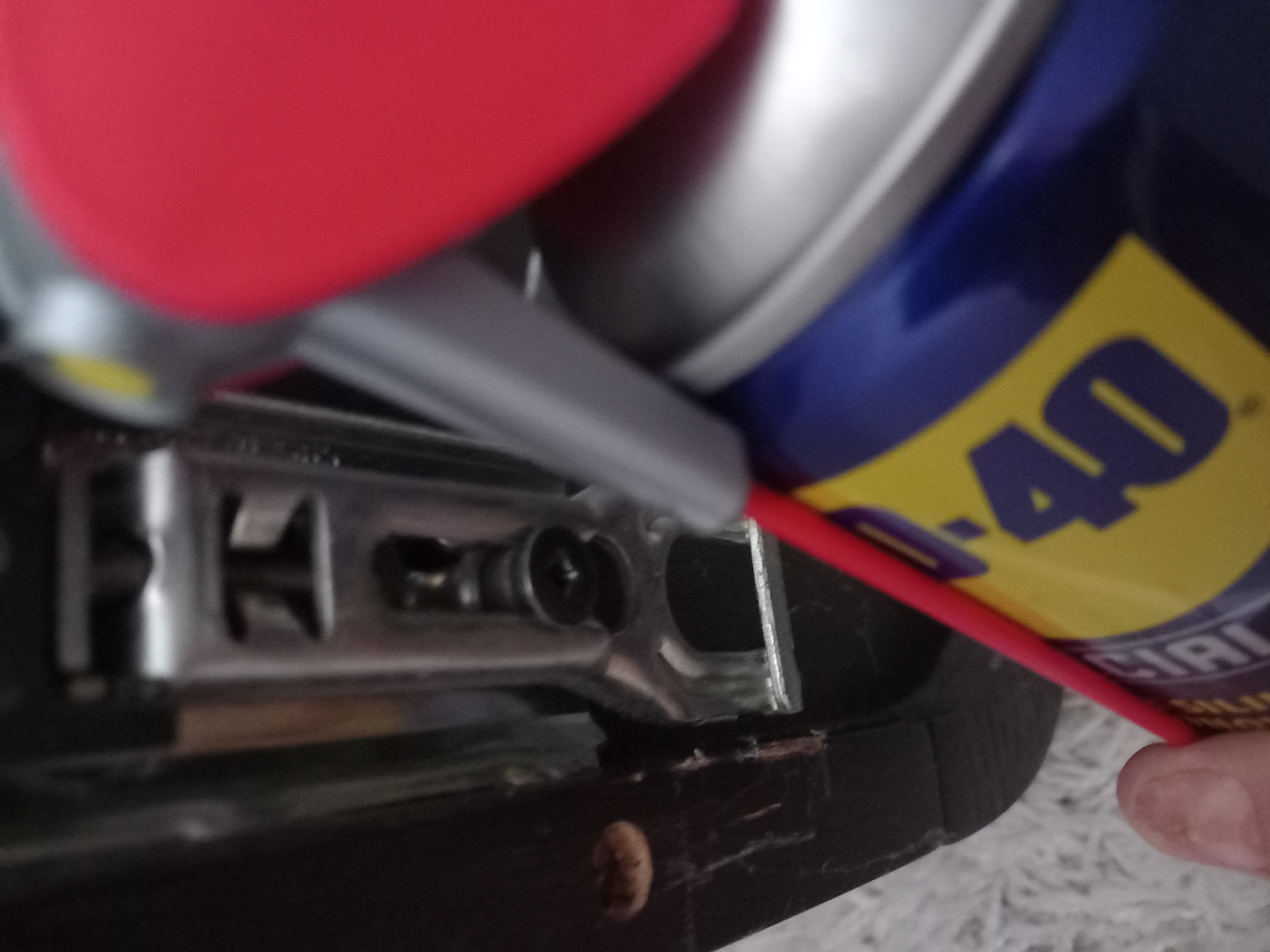 Szekrény tartó(függesztő) elem befújása wd40-nel.