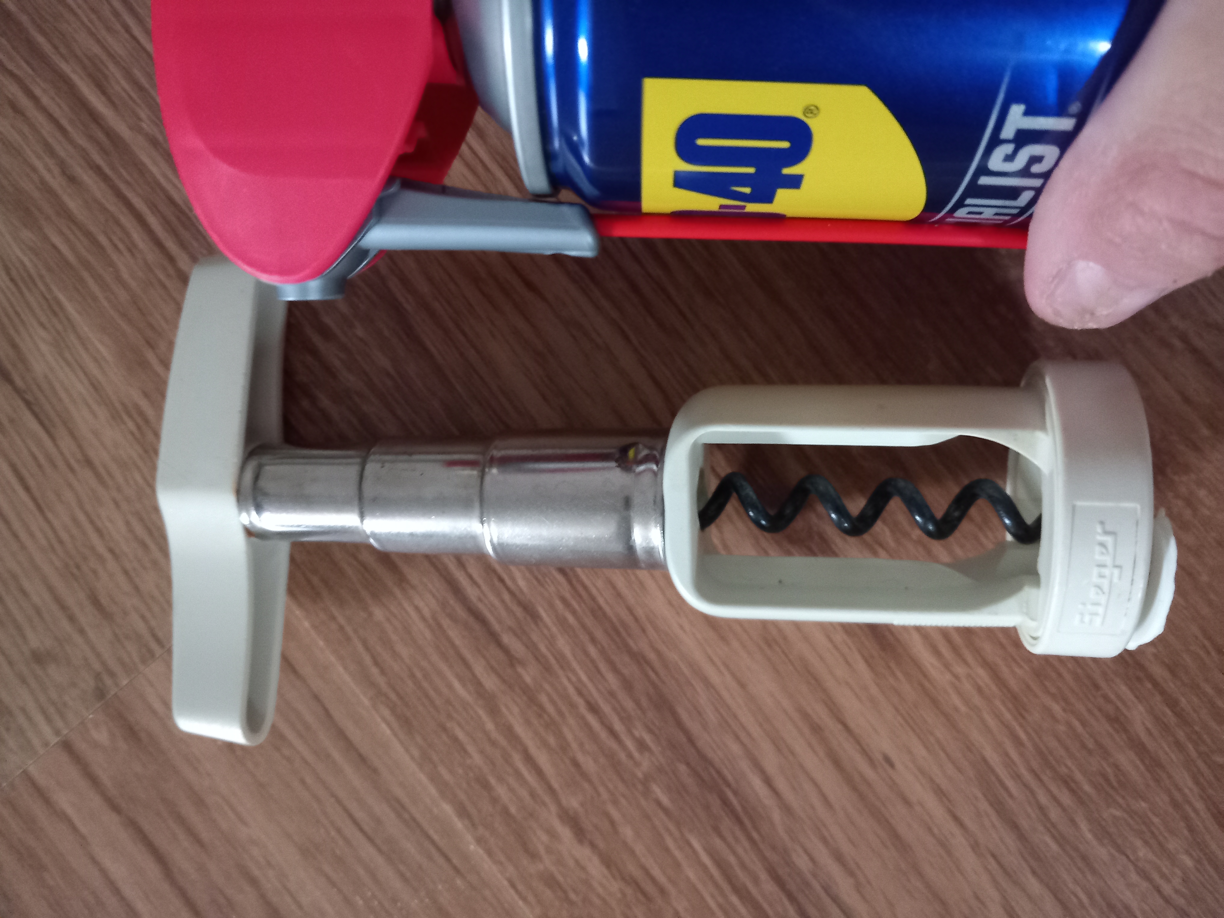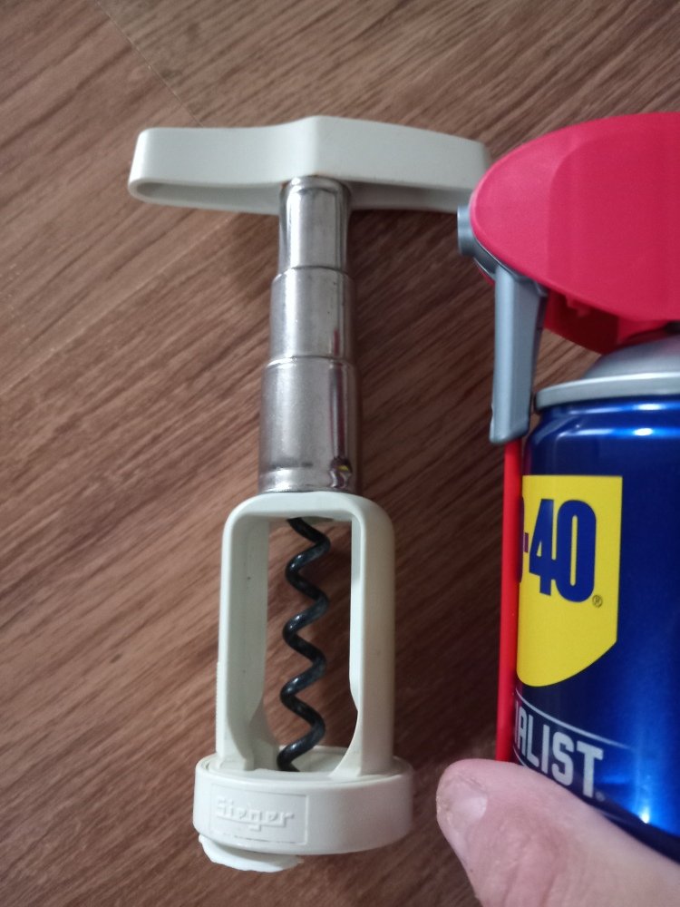 Teleszkópos bornyitó befújása wd40-nel , ne akadjon meg az üveg nyitása közben.