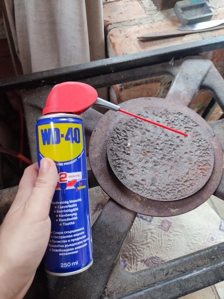 Befújtam a korongot WD-40-nel, hagytam hatni, majd egy ronggyal könnyedén letisztítottam a koszt és a rozsdát. A korong újra használható és tiszta lett.