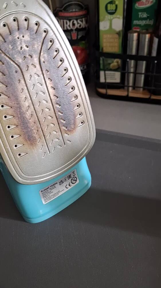 Befújtam WD-40-nel a vasaló talpát,pár perc múlva már látható volt a változás.