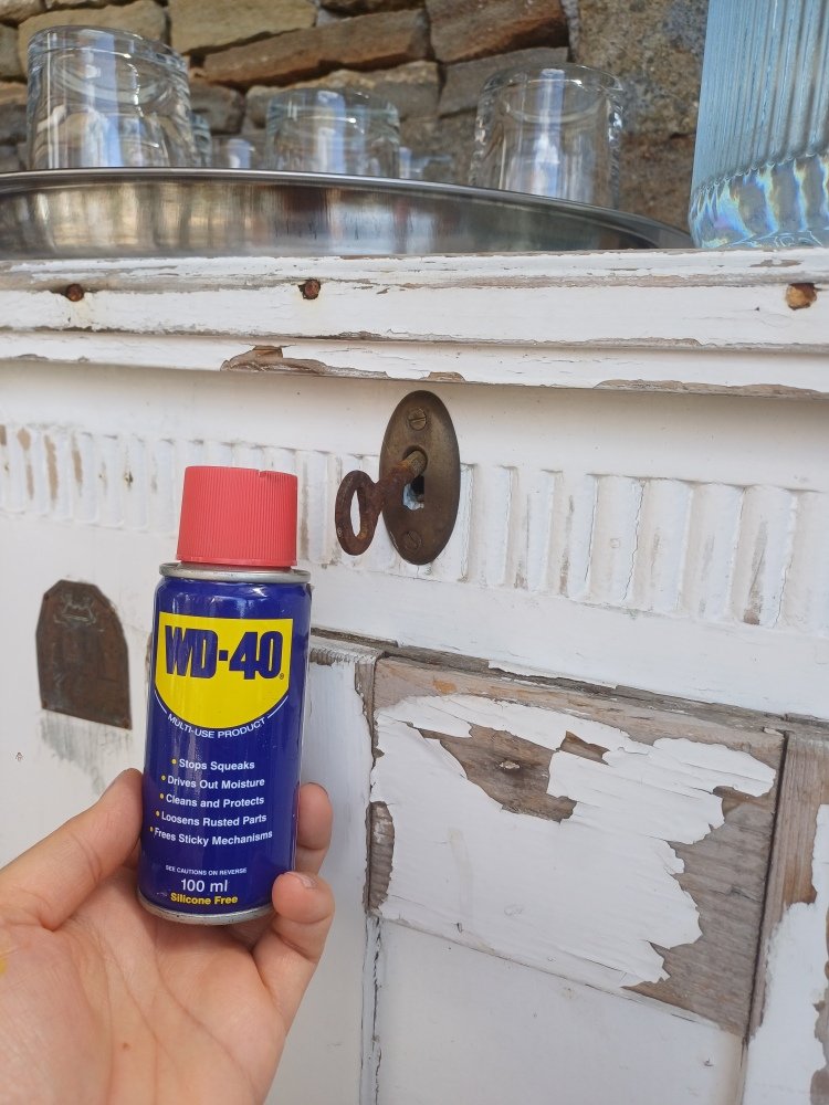 Vintage Kredenc zár kenése WD-